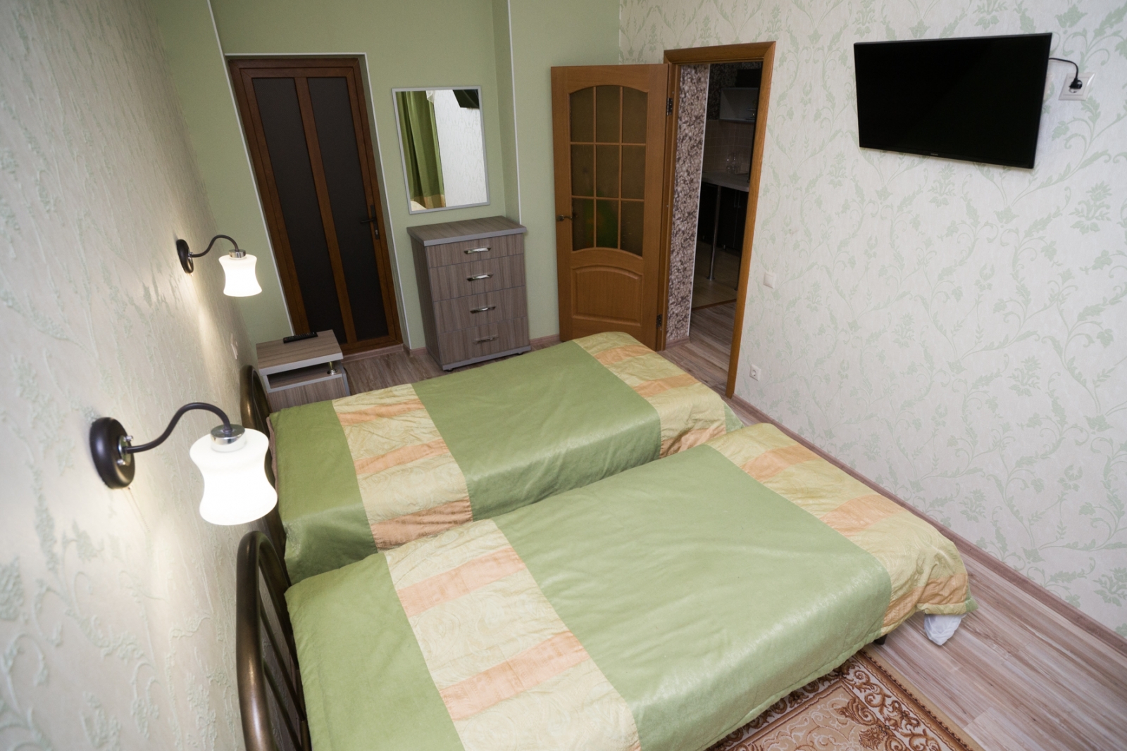 На территории санатория для заселения гостей предусмотрены два 8-этажных корпуса. Номерной фонд составляет в целом 850 мест.
