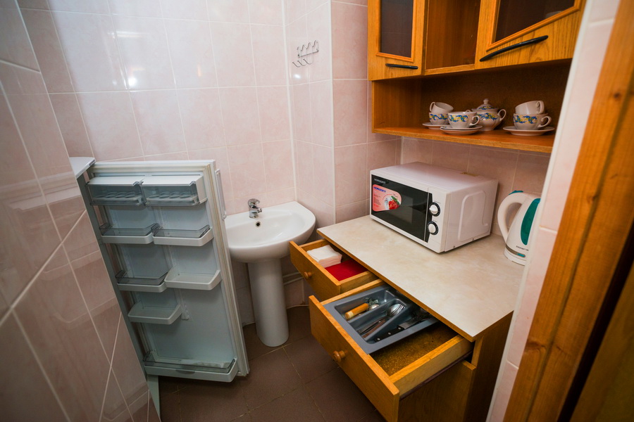 1 осн. место. 1 доп. место. Балкон. Мебель: вешалка, диван, зеркало, кровать двуспальная, прикроватные тумбочки, стол, стул, шкаф. Мини-кухня. Оборудование: микроволновая печь, телевизор, холодильник. Санузел: с душем, туалетные принадлежности, фен. Сервис: Wi-Fi бесплатно, смена полотенец, смена постельного белья, уборка номера.