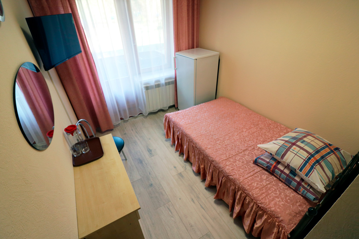 1 осн. место. 1 доп. место. Балкон. Мебель: вешалка, зеркало, кровать односпальная, прикроватная тумбочка, стол, стулья, шкаф. Оборудование: телевизор, холодильник. Санузел: с душем, туалетные принадлежности. Сервис: Wi-Fi бесплатно, смена полотенец, смена постельного белья, уборка номера.